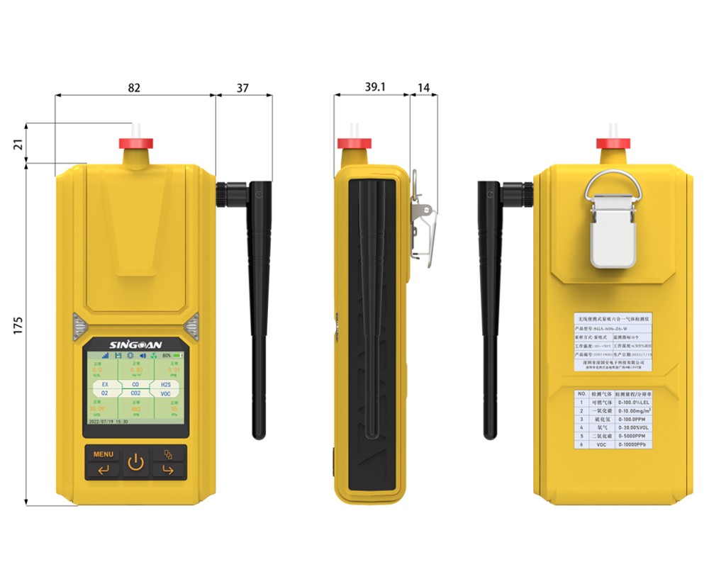 SGA-606系列便攜式六合一丙烯酸甲酯氣體檢測儀小巧輕便,功能強大。2.4英寸高清液晶彩屏,實時顯示檢測目標氣體濃度值;內(nèi)置高性能采樣泵,1-10檔流速可調(diào);5000mA超大容量鋰電池,可連續(xù)工作20小時以上;內(nèi)置全生命周期監(jiān)控系統(tǒng),傳感器壽命到期、儀表故障、校準提醒,零點自動修正等一應(yīng)俱全,還可一鍵復(fù)位恢復(fù)出廠設(shè)置;中文簡體、英文、中文繁體三種語言系統(tǒng),適合所有人群操作。umol/mol、ppm、ppb、%LEL、%VOL、mg/m3、ug/m3、g/m3、mg/l、g/l等濃度單位之間自由切換,氣體濃度值一目了然;支持本地存儲10萬條以上數(shù)據(jù),自動存儲歷史記錄、報警記錄、故障記錄、開關(guān)機時間等數(shù)據(jù),數(shù)據(jù)存儲間隔時間1-999秒可調(diào);支持PC-TWA時間加權(quán)平均容許濃度和PC-STEL短時間接觸容許濃度:數(shù)據(jù)可通過儀器自帶的專用軟件通過USB進行導(dǎo)出Excel表格,進行編輯、打印、存儲等工作;標配水阱過濾器,有效過濾粉塵顆粒物和水汽,提高檢測精度,延長傳感器使用壽命;也可選配內(nèi)置無線模塊,通過4G流量卡實時將監(jiān)測數(shù)據(jù)上傳到物聯(lián)網(wǎng)平臺;智能光感控制功能,儀表會自動根據(jù)當前光照度調(diào)節(jié)屏幕亮度;大氣壓指標監(jiān)測,特別適合高海拔環(huán)境下使用;標配鱷魚夾,可在使用過程中真正解放雙手,不影響正常作業(yè);防跌倒報警功能,當人員發(fā)生意外跌倒,檢測儀則會持續(xù)進行報警,提醒其他工作人員及時救援;特別適合進入隧道、管廊、地窖、污水池、下水道、礦井、密閉空間等場所的作業(yè)人員使用;