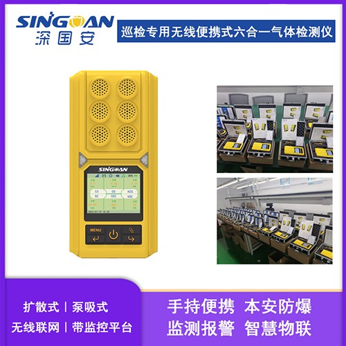 深國安采用無線傳輸技術的有機結合,新研發的一款巡檢專用無線手持式六合一氣體檢測儀,產品支持同時檢測1-6種氣體,常規檢測量程0-100PPM,可選擴散,或者泵吸式采樣,...